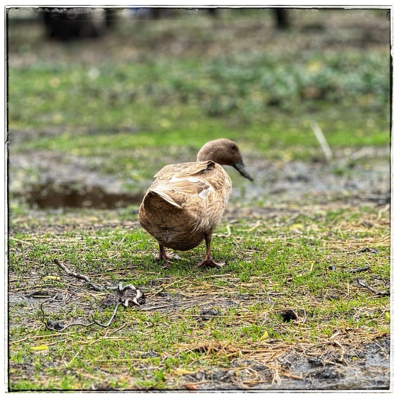 Quacker is quacking along. Unlike Mr Flowers she is delighted with the wet weather.