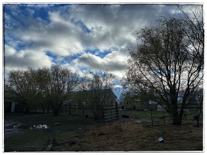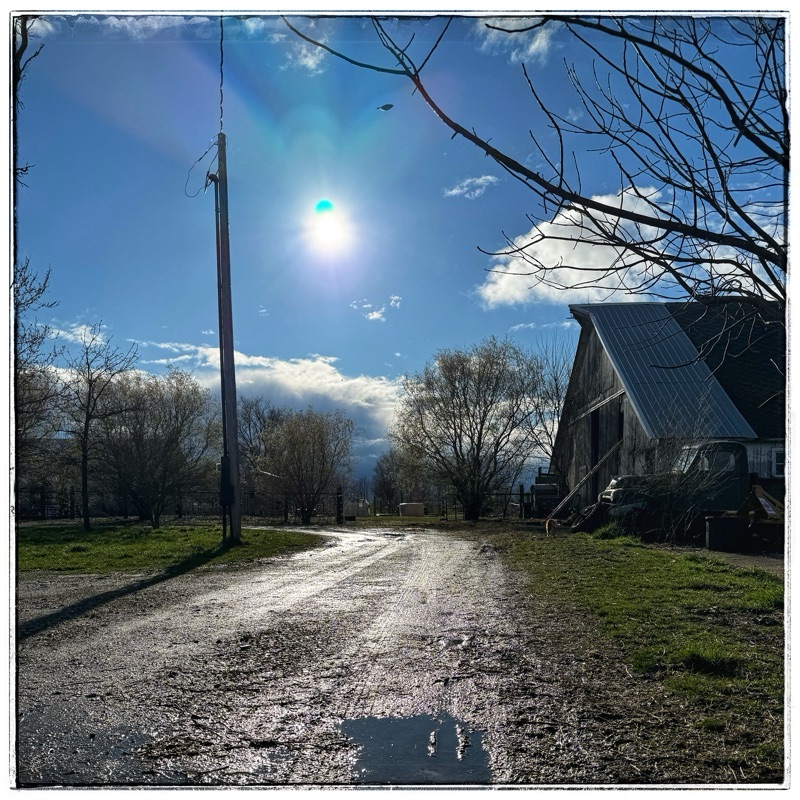 The sun came out right at the end of the day yesterday. Shining straight from the horizon. I could see the green in the trees – back lit – peeping out.