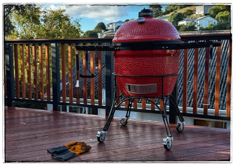 We had a barbie last night – in America this would be called grilling out. The usual fare of steak and potato salad, mushrooms stuffed with chimi churri and greens from the garden plus late season corn.