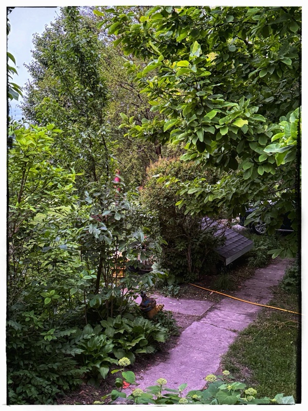 It filled me. That scent. Then my face ran into a tree. (We do not have outside lights so the migrating birds and moths don’t get confused and the pigs can sleep in the dark like real animals). I need to prune around the porch – we are surrounded! There are great branches of greenery blocking the pathways. Wild. It is delightful. When I left our trees were still wintry. Sparse. Now the grounds are heaving with growth.