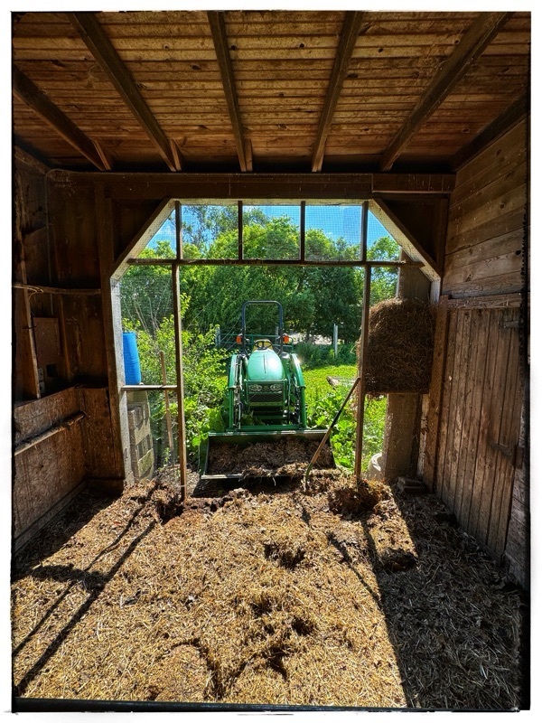 R and I also took the fake wall off the chook house and began cleaning out the debris in there. I established a new compost heap for 2024.