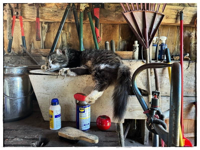 Celi – your photos are so compelling. I love how each of them tell a story on their own – and then – more is added – sometimes even a totally different topic – while we read your update. I second the observation that your cat is VERY happy on location! Good luck with the chicks!