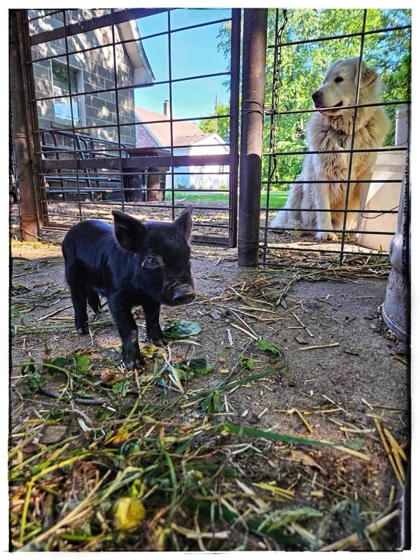 A farmer heard I was looking for pigs to raise (for the freezer so I won’t get attached) and told me she had some American Guinea Hogs – two weeks old – ready to go late July. I said YES. I will take two, I said and will drive up to collect them late July.