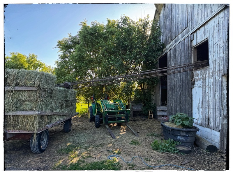 Here is the hay bale delivery set up. Because I am in charge this year I set up a system to use less brawn and more brain.