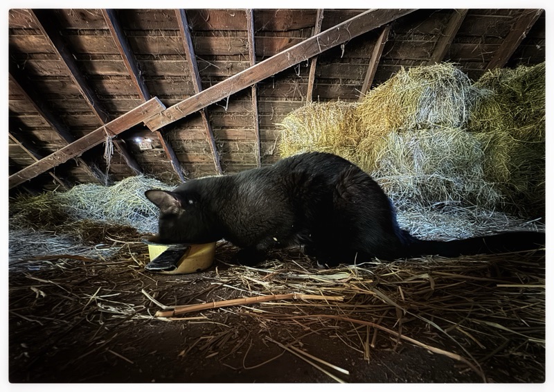 7. We are working on catching a kitten. It arrived Saturday – on the roof! There is no way a small kitten could’ve climbed up there (the squirrels have to jump a good 18 inches from the one branch to be up there and this kitten is too young (maybe 3 months old?) to have done that. I suspect a hawk might have had it and dropped it, but we’ll never know for sure. It’s a black kitten with some white on the paws. I haven’t gotten a really good look at it as it scoots under the back porch as soon as it sees or hears you. My step-granddaughter and her partner (he saw the kitten “jump” (fall?) from the roof – a good 9 feet to the porch deck) are doing the feeding and, hopefully, catching. Brat has seen the kitten from the window and meowed at it – the kitten hid.