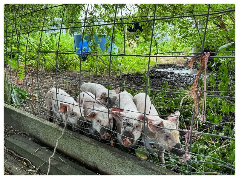 We shifted the metal pig water into their run yesterday. They have no manners at all and were pooping in their water bowls. Then drinking it. Badly raised. Sigh. I was wasting way too much water emptying the stinky mess and cleaning their bowls out, two or three times a day. The metal water tank has a small side bowl, the right size for a snout. No bottoms can get in there. So the water will remain clean. I will take a picture of it today for you. It is old and bit leaky until it reaches a certain level so the pigs get a wallow and a clean drink.