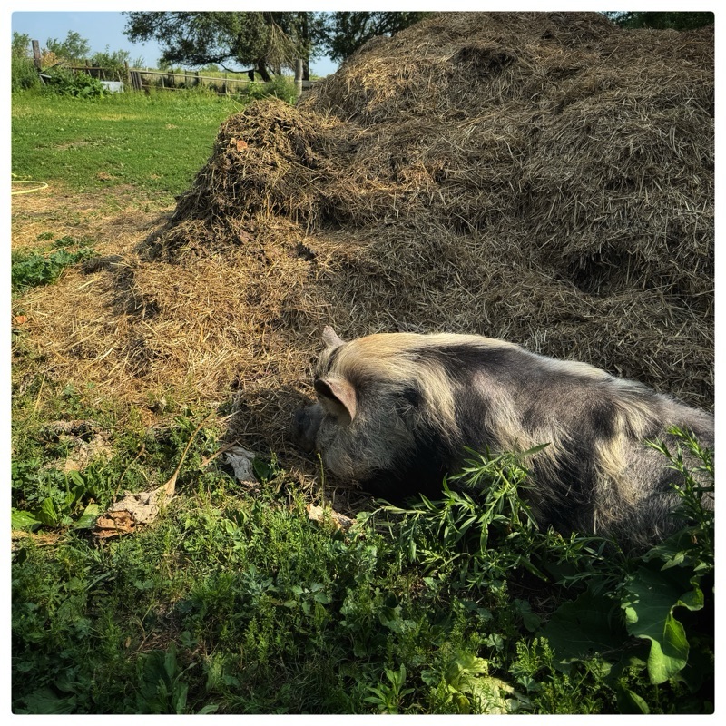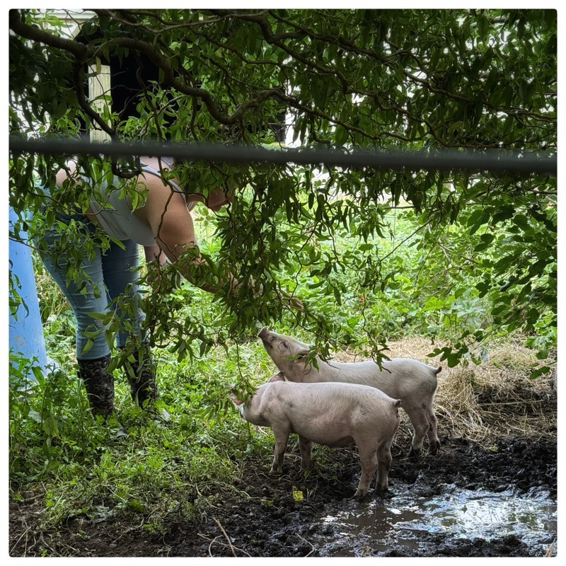 The piglets are eating down all their shade. Slowly all their greenery is being ripped back down to nothing. And boy do we need shade this week.