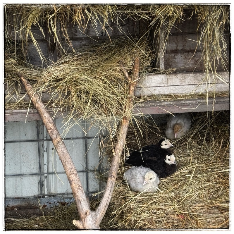 The turkeys are settling into their new home. There is very little panic peeping now. They are quiet and calmer.