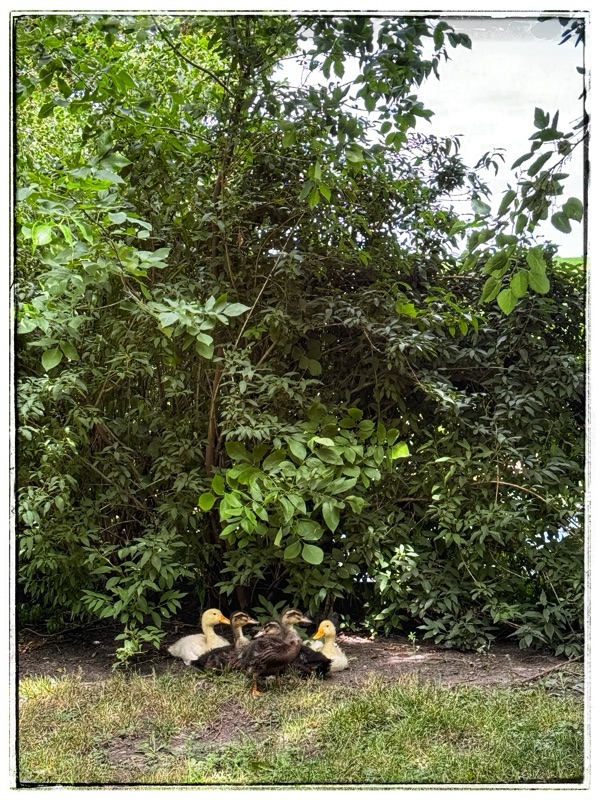 Do you think the ducklings know that the pond is just on the other side of this raggedy hedge.