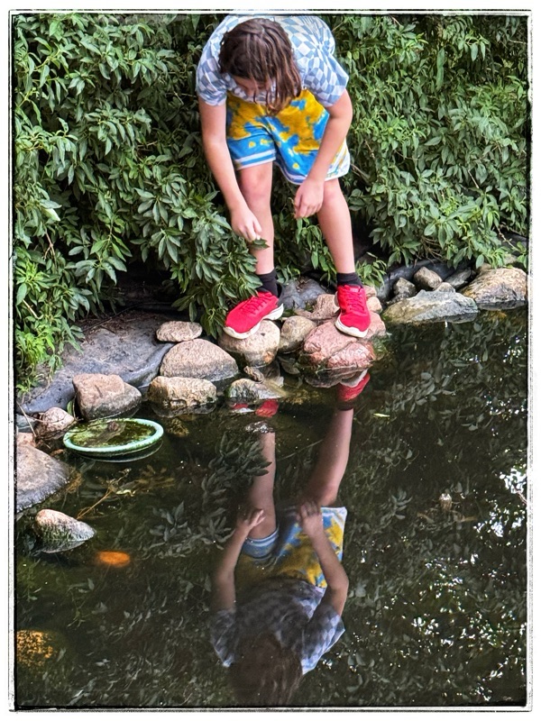 The youngest member of the party wants to do some work on the pond. He loves frogs and ducks so all is well in his world. The pond attracts all manner of frogs and toads and birds.