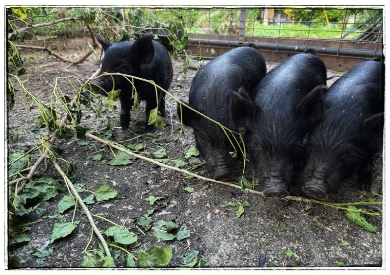 These Guinea Hogs are going to get over their cuteness fast. They have a built-for-work, no nonsense look about them already.