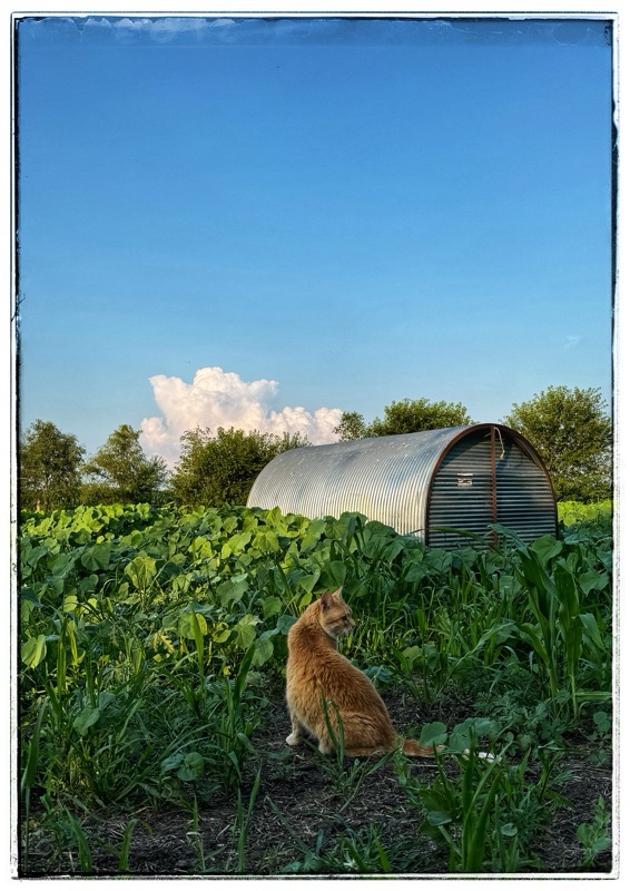 She followed me everywhere yesterday evening. She prefers kitchen scraps for dinner – I think her teeth are getting old. She waits until the other cats are fed in the barn then comes up to look mournfully through the kitchen door. She is small and prefers not to be touched – something I really appreciate about her.