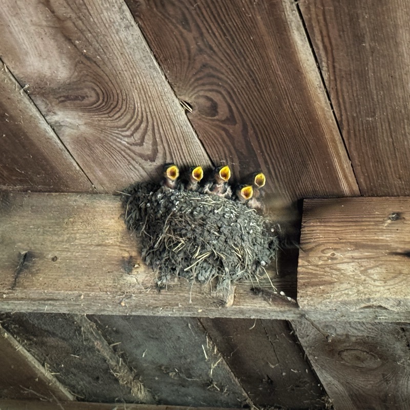 5. I have a bumper crop of swallows this year, the horses and donkey are a bit speckled with poop. I like them and so far this year I don’t have a territorial one dive bombing my head.