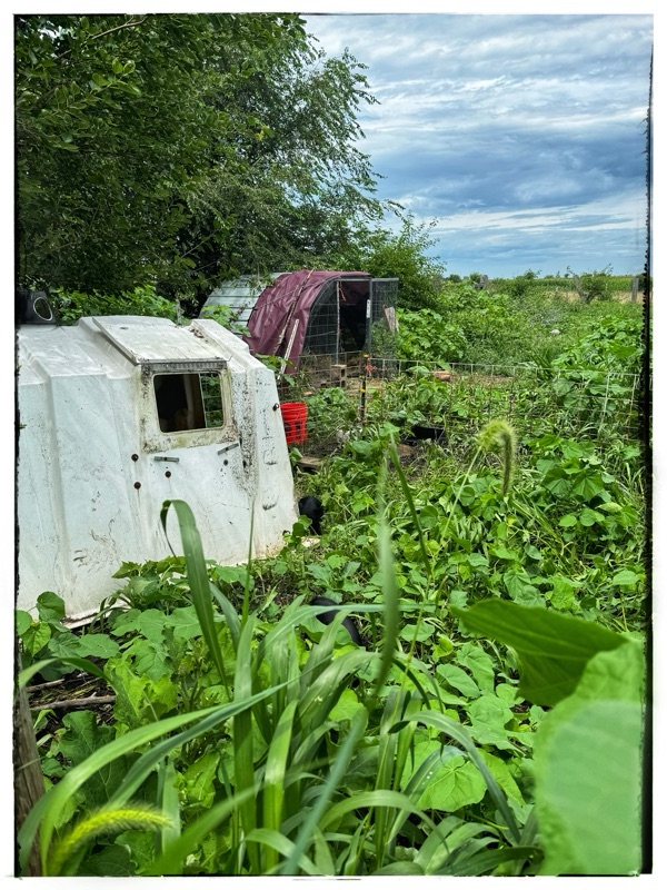 The calf hut was set with on top of the baby pig house. Everyone is set now. Under cover. Feeding routines in writing. Ready for me to leave them tomorrow.