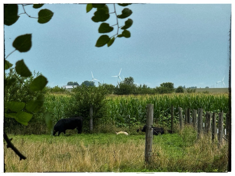 In one of your pics I see those wind turbines on the horizon. How do you feel about them? When we drive through Illinois on our way to Wisconsin I always feel vaguely threatened by them, they look like dangerous aliens out there marching towards the highway.