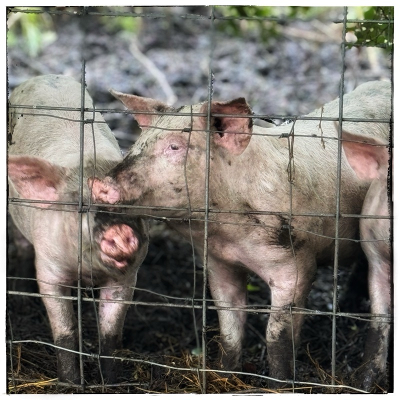 “Nah, bro,” says the pig. “I won’t get you dirty!” Dead serious, his face. If he had eyebrows he would wiggle them. Then his mischievous twinkle flips to badness and turning they all shriek, laughing hyenas hurling themselves back into the mud-fling of the frey!