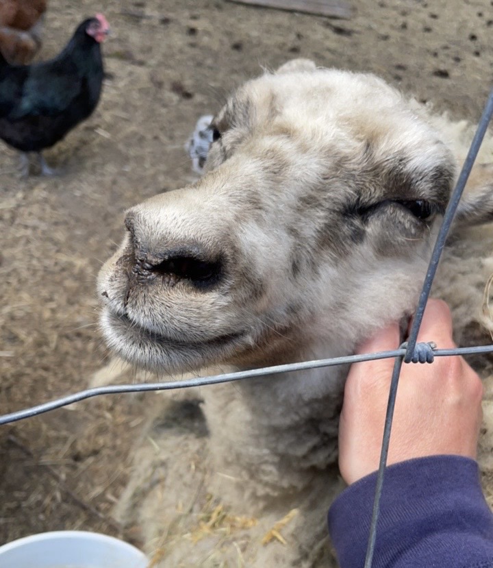 on her native grass hay, finally content and not yelling for pets at the moment. And, yes, she