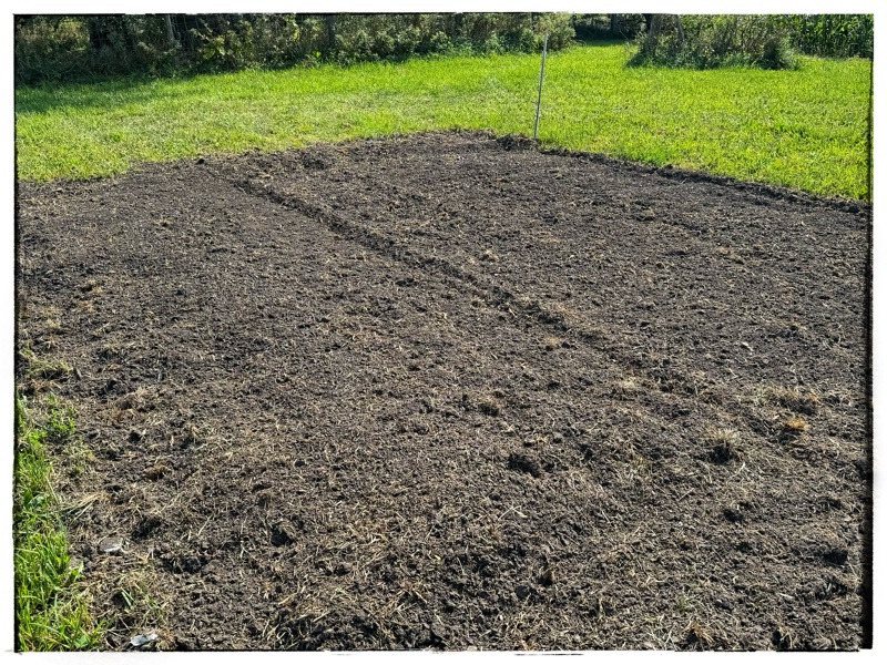Today I will spread compost over this entire area then till that in. Cutting a new garden takes time.