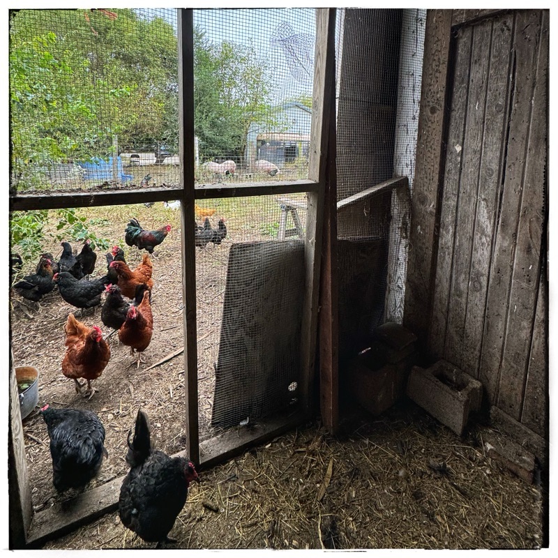 Apparently while I was away, there was an altercation between the chook house wall and the baler. So I will set him indoors up to fix that today, mink season is coming. No holes allowed.