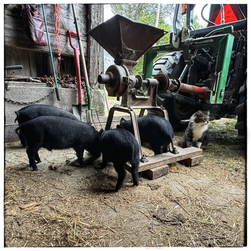 They are cute but it is the cat in the image that makes me smile. The piglets sniffed him on the way past and he retained his haughty disinterested expression the whole time!