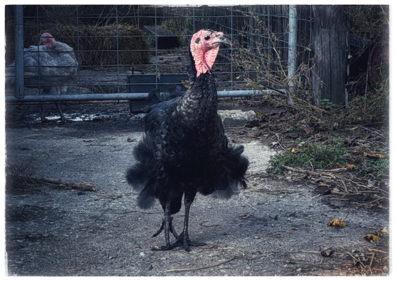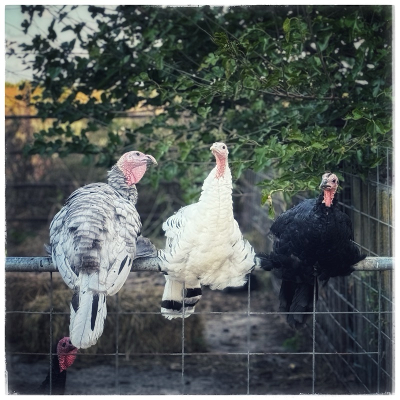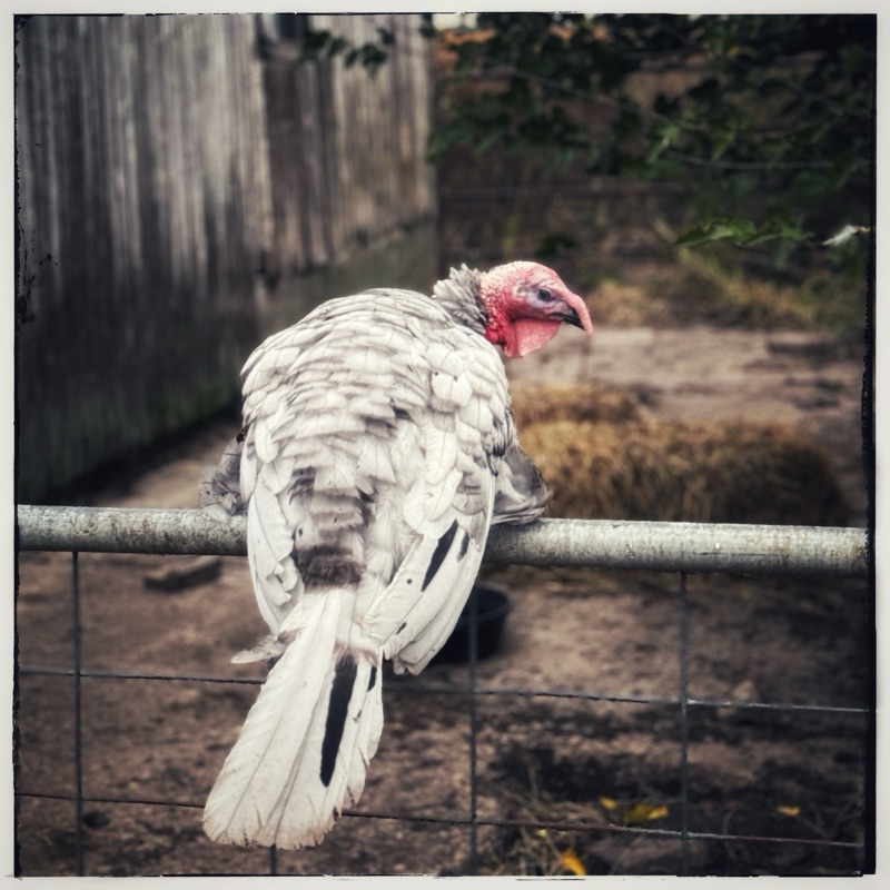 So how did the airport personnel react to the massive chain? I can just imagine you explaining that every good farmer must have a variety of chains at hand… 🙂 Funny you mention training the Pops to escape. I sort of thought that very thing after the video yesterday, watching you carry that lid with the chicken food just to coerce that guy back home. Those turkeys look so very awkward perched on the fence, ready to topple off at any moment!