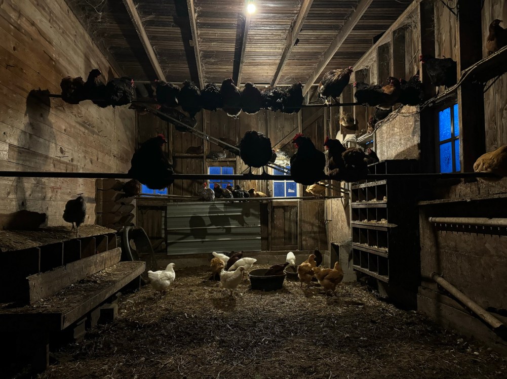 I love the shot of all the chickens on their high roost in the Chook House. They must be good flyers to be able to get down from there.