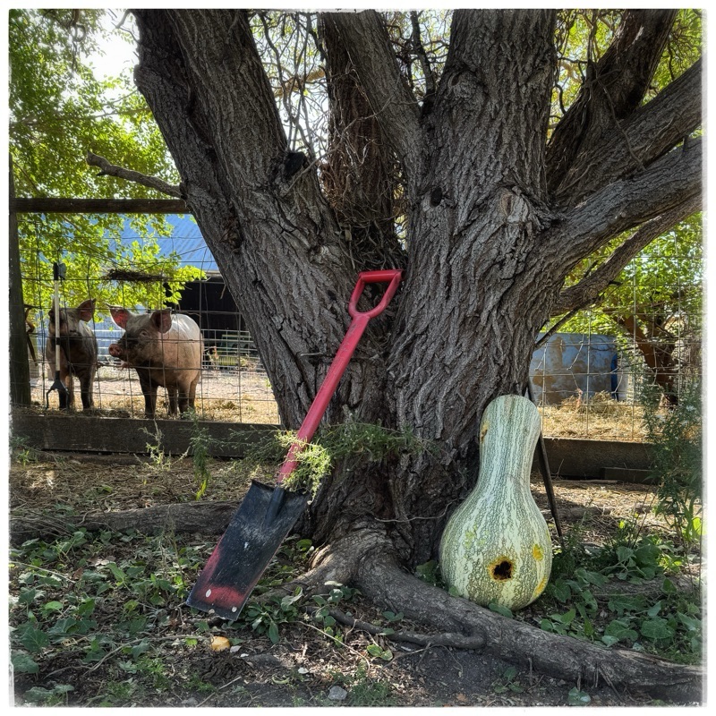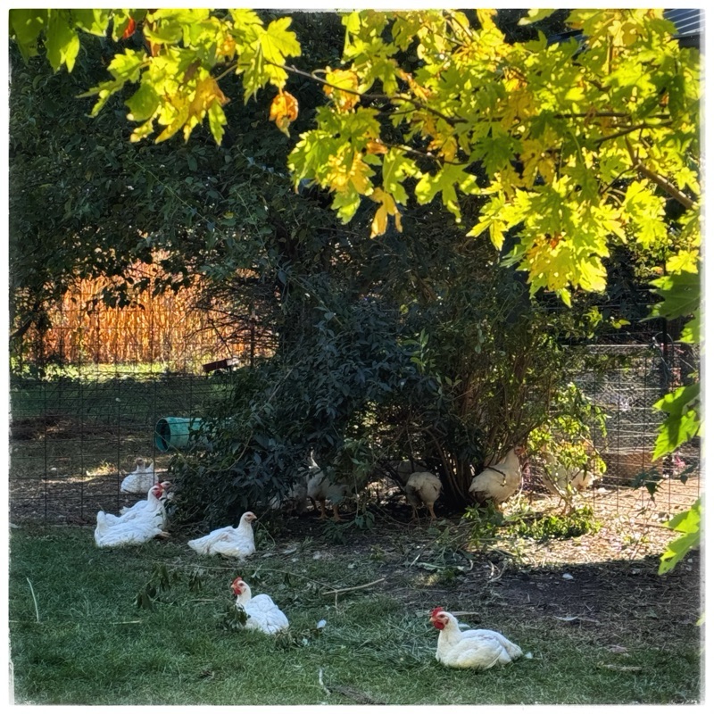 The chickens are intent on hollowing out the pumpkin gourd I got from the boy down the road. I set it there as decoration but the chickens don’t believe in decoration!
