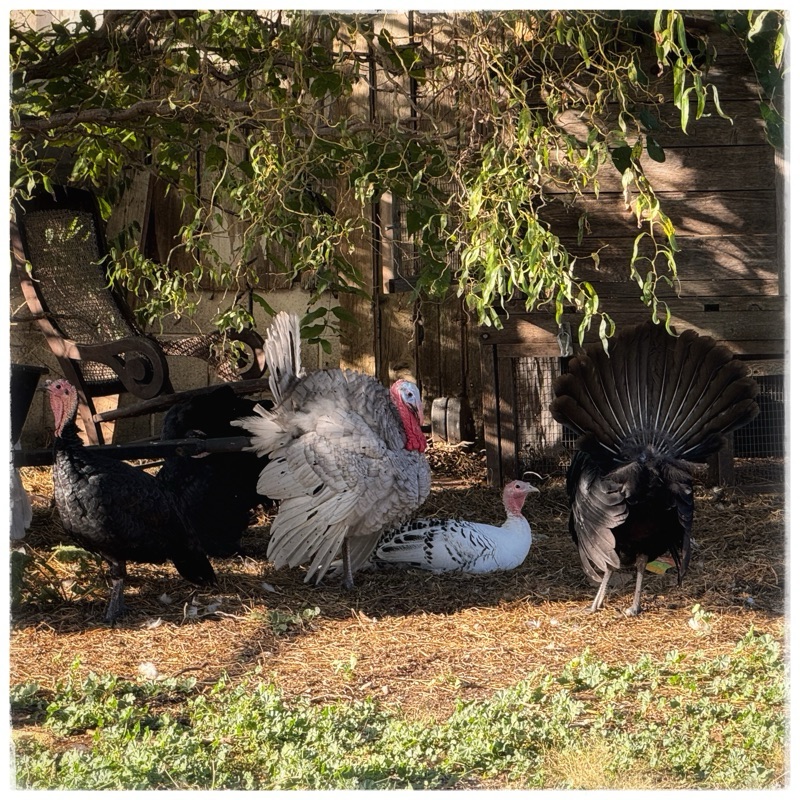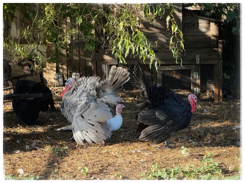 I think the dancing turkeys are another indication of maturity and mating, relative to the bullying of the chicken yesterday…