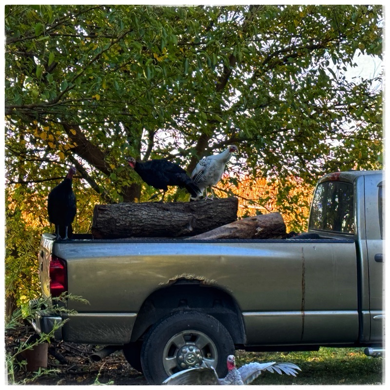 Plus six huge poopy turkeys roosting on my porch at night is not sustainable.