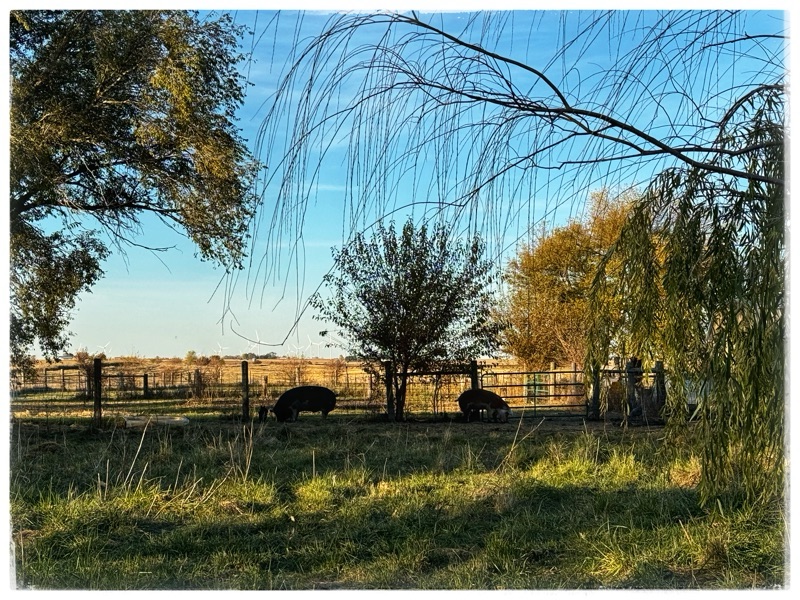 Today I will clean up after the meat chickens. And begin preparations for shifting this mob of hogs tomorrow. I will walk them to the barn and load them up there. What could go wrong?