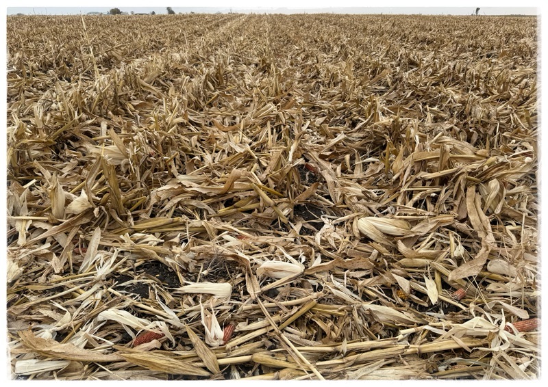 The fields are empty. Soon a guy with a plough will gently turn some of this debris in.