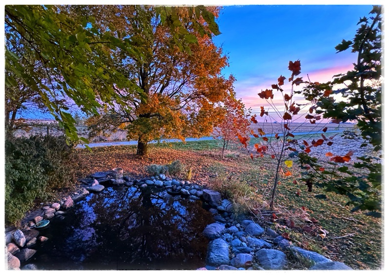 Gusty winds today and as a result leaves flying everywhere. Guess the time to get out and rake the pine needles has arrived—most of them are down. Best to get them tucked away (to be used as mulch here and there) hopefully saving time and energy to deal with the leaves once more of them are down.