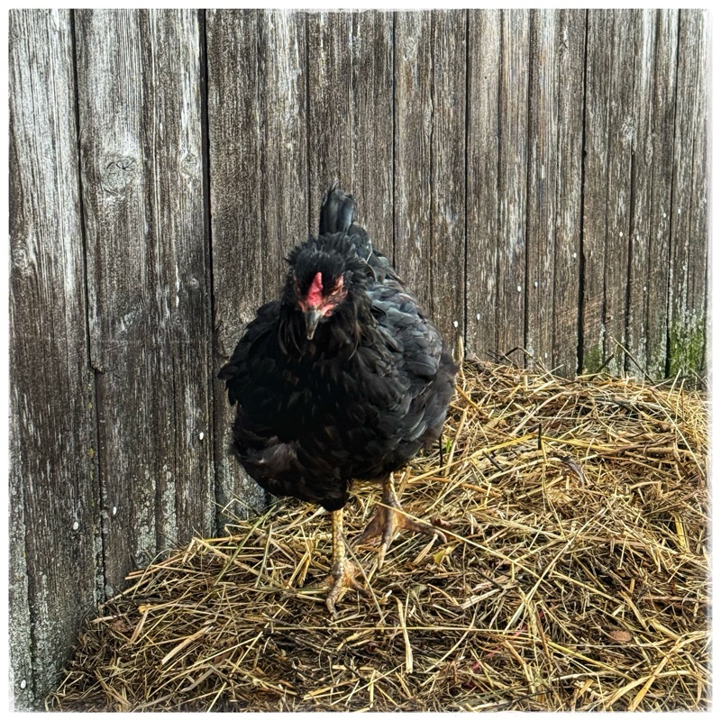 Indeed. She is good at keeping a low profile too. There is another super old chicken in the hen house who I will bring out today – they can both sit together for a few days in the dog crate to form a kind of elder partnership. And put on a little weight.
