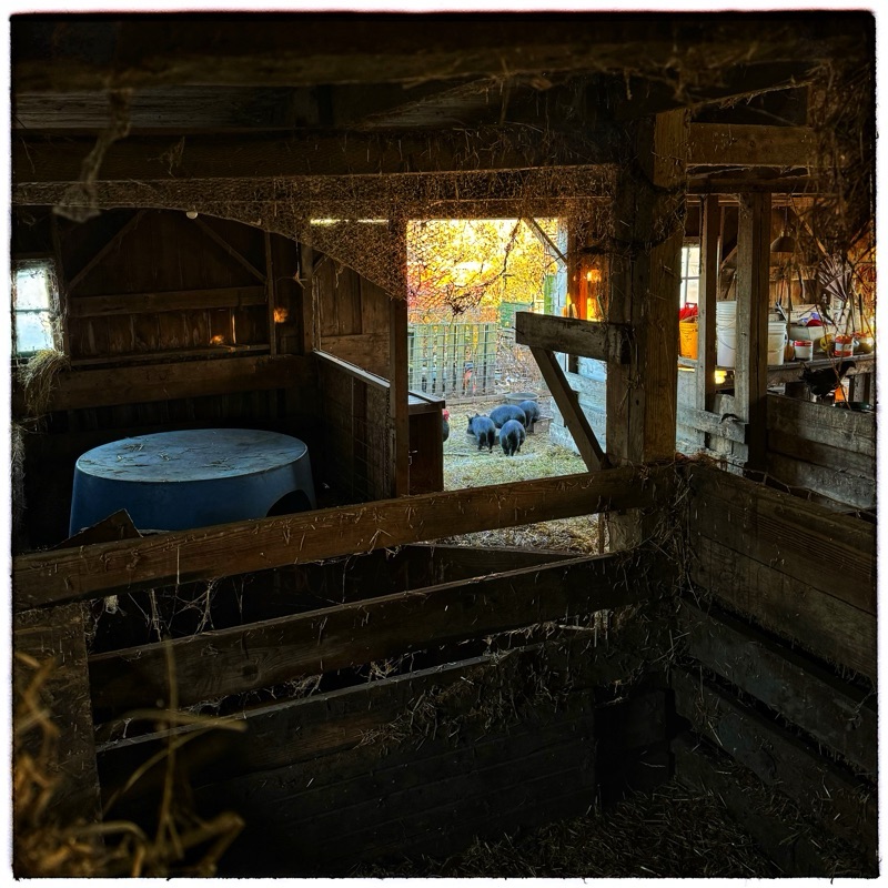 3. I’m enjoying the mental image of the PopPops running around inside the upturned trough, packing down layers of straw to make their insulated winter bed. The grunts and shrieks of joy that accompany it…