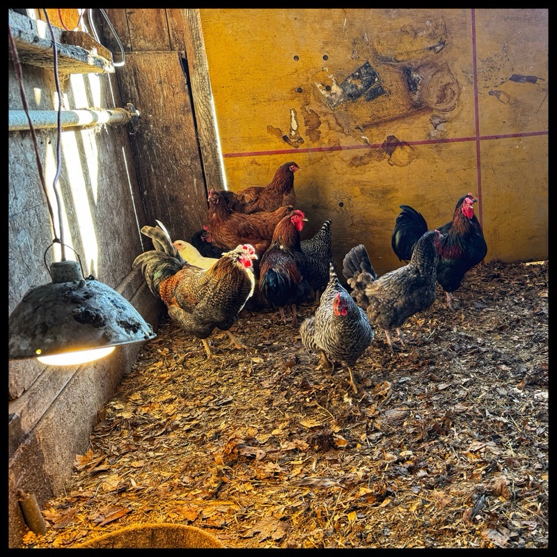 This will warm up the hens and also protect them from critters getting through the (now) fragile netting across the front.