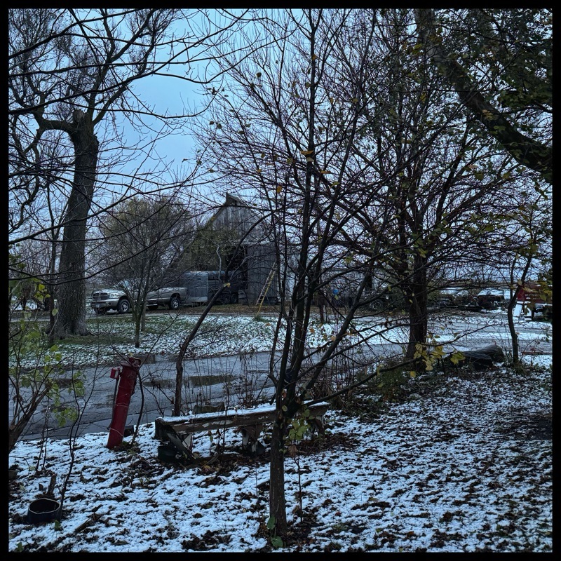 It was a wild looking storm yesterday with significant winds and quite the chill but after a few hours, the temperature rose again, it eased off and the farm was left a gray sloppy mess.