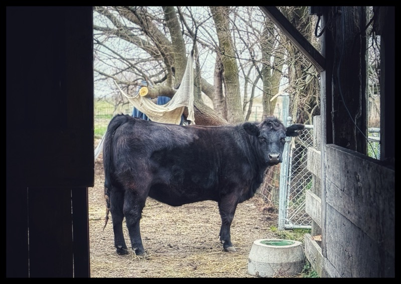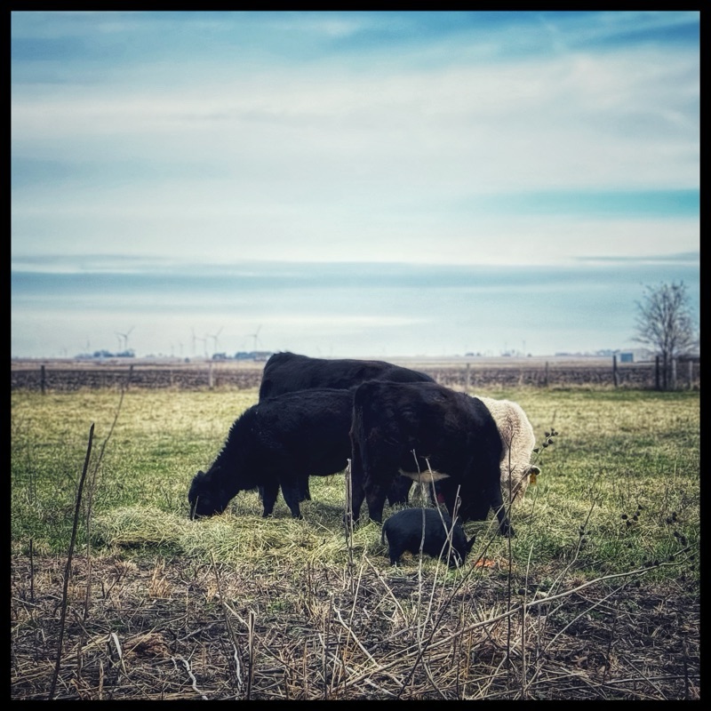 The problem with black cows in this winter light is they all blend into each other. Except for one of those things that does not belong!