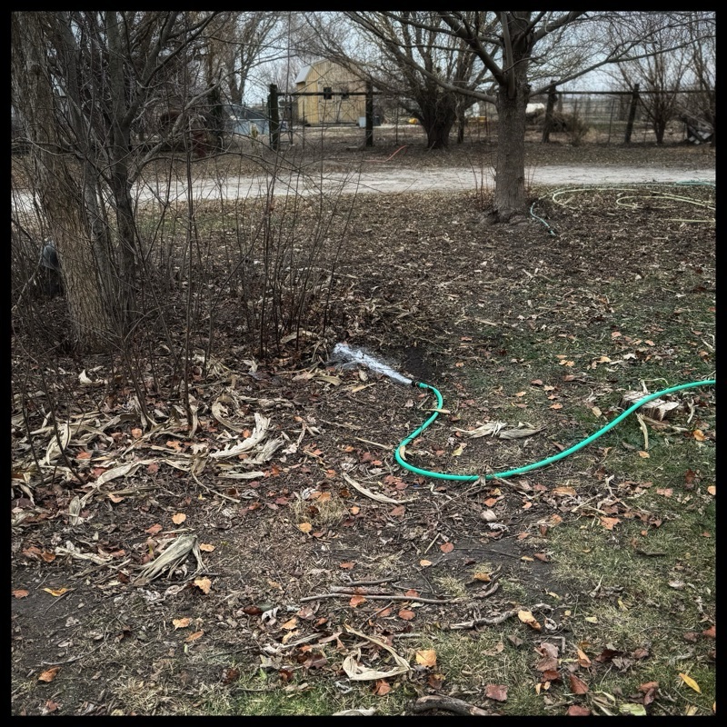 I never take running water for granted! After we filled the stock waters all the hoses were drained again and hung on posts for next time. I was caught short with this cold snap.