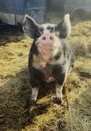 “Tima is a naughty pig. She is eating anything she can get to. She pushes any gate open she finds unlocked. As I am watering and feeding everyone else. I believe she had 3 5 course meals today!” 😆