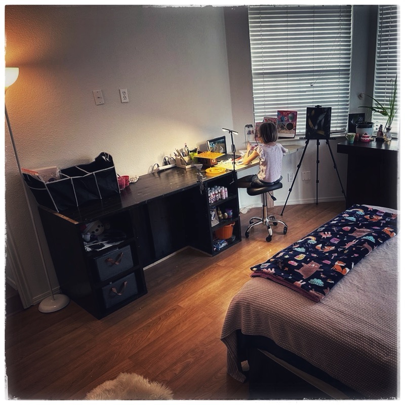 My grand-daughter’s bedroom in California. The little artist.