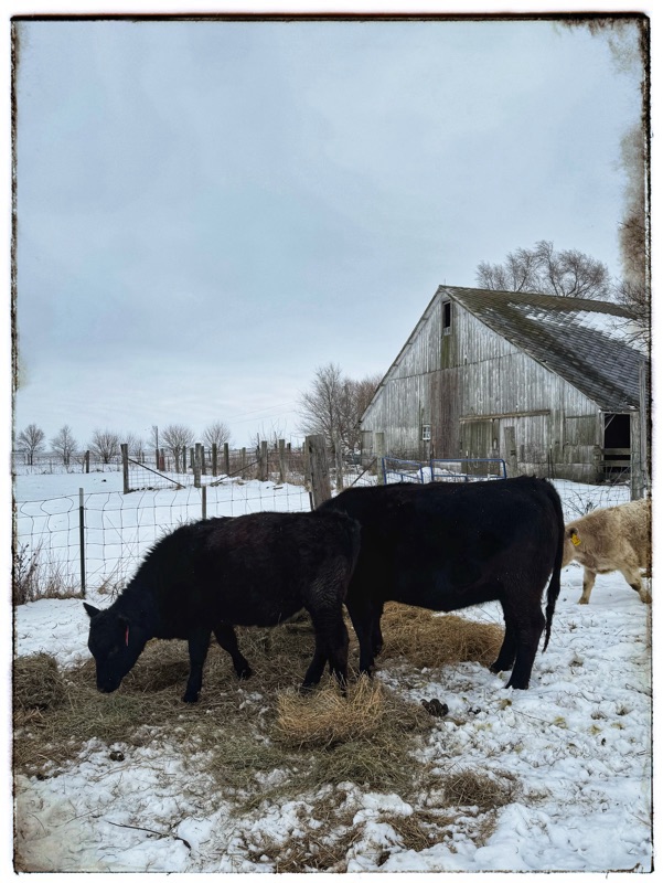 These black cows are super black against the white of the sky and the snow. They are seldom still – especially in this cold. So I find them hard to photographs. I need to think harder about my aperture.
