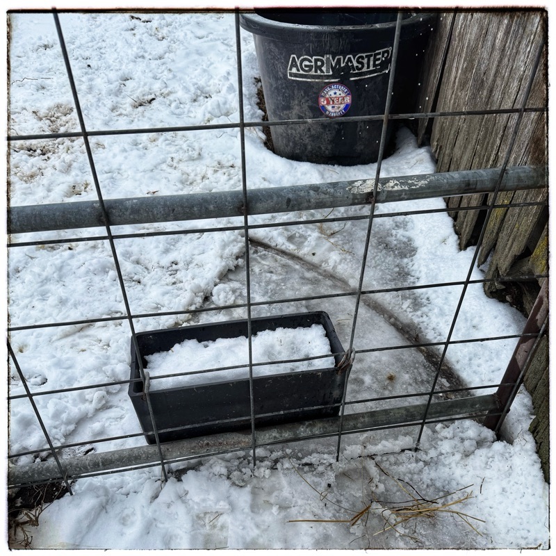 I got help to get all barn doors chipped out of the ice yesterday so I could roll them all the way shut at night. With this even colder weather on the way we need to be able to shut the barns up to keep the frigid winds out.
