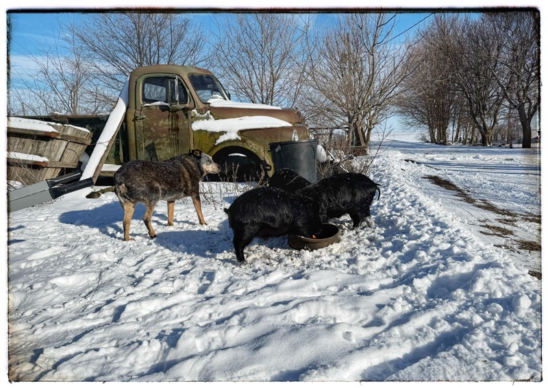 Those little black pigs always look so healthy with their shiny shiny coats. I too think descriptive names are a good thing. Late to Dinner, shows animal awareness and affection but not sentimentality. I do understand your forthcoming adventure( in the warm ), though your animals and followers will miss you. It has also been very very cold in the Uk for the last few days but luckily no snow at our end of the country.