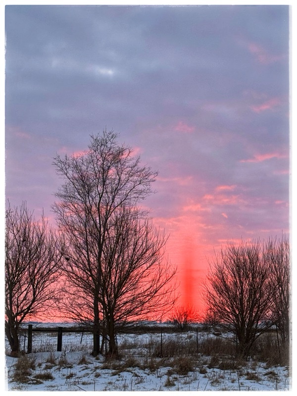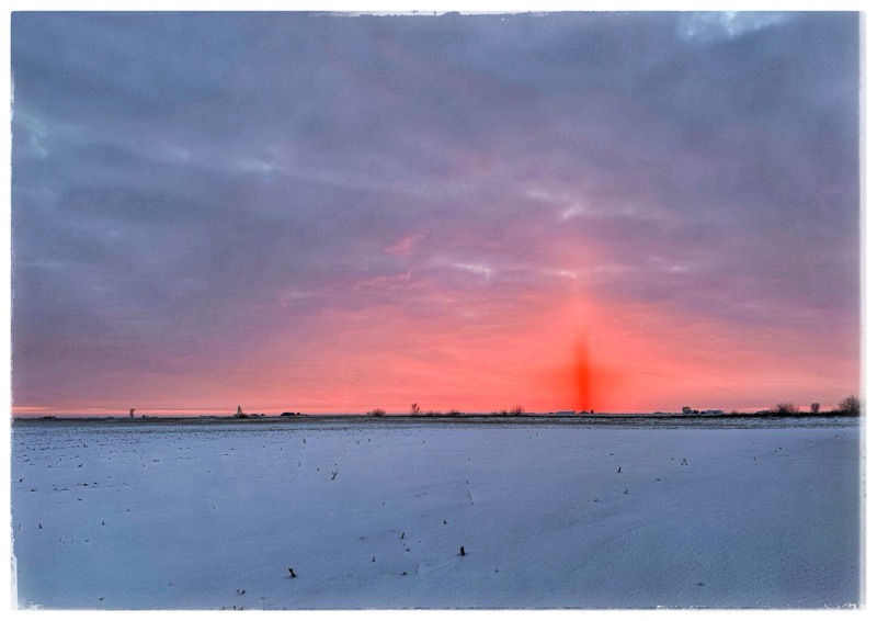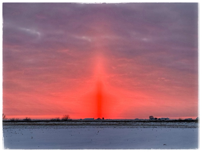 1. Nice sun pillar. You only get those when it is REALLY cold and there are the right kind of ice crystals in the air. Glad I am here in Northern CA where it is only getting down into the 30’s at night. Don’t know if I could handle the kind of cold you are getting.
