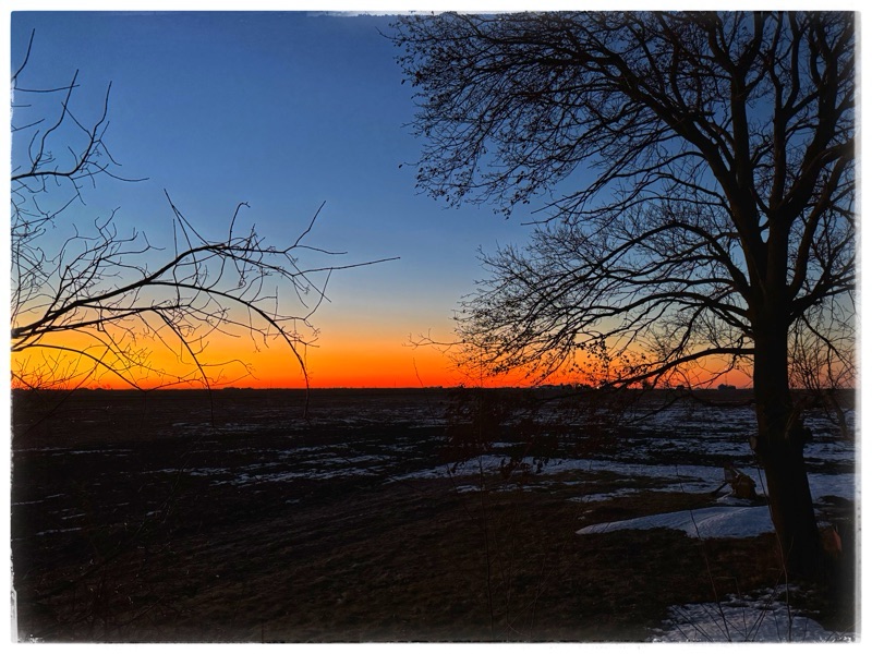 I can almost feel the burn of feet coming back to life when you come in from the cold. Do you keep a basket of socks near the stove to put on your cold feet when you come in, like I used to? That final sunset photo is the Toccata and Fugue to my synaesthesia brain, just lush and gorgeous. I have a very old Kindle (it actually has a keypad) which I keep permanently offline unless I’m actually downloading something. It does help prevent all the ‘helpful’ suggestions.