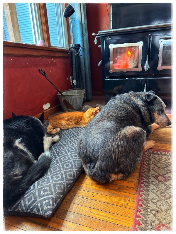 Most of the ice and snow here melted yesterday and the day before, but I’m not going out in that bitter cold for anything less than a real emergency, which id fortunately unlikely. It’d be lovely to be near that wood stove on a day like today, I’d probably be baking cookies or pumpkin bread or something like that. Stay warm.