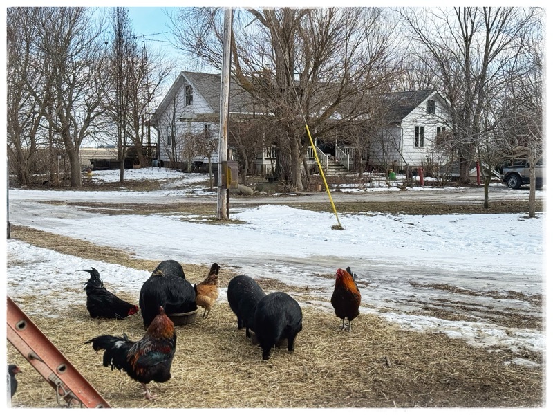 It had been extremely cold but these chickens had a heated house. So – know your farmer. This farm was up close to Chicago about 50 miles from here. Way too close for comfort.