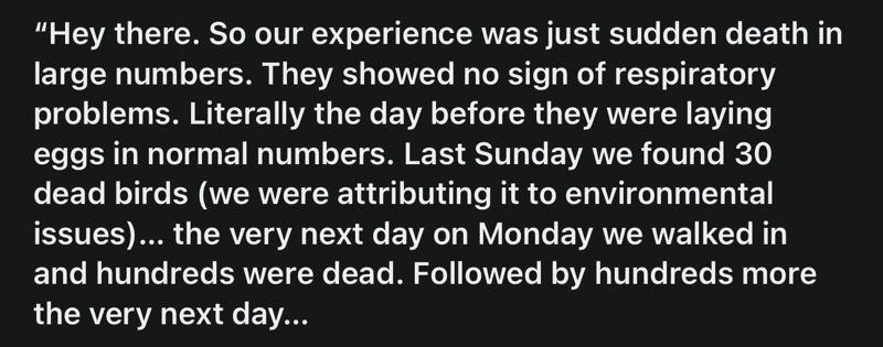 We got shocking news the other day of an organic chicken enterprise in our cohort that lost almost all their chickens to Avian flu. We wrote to ask her what to look for and here is her answer.