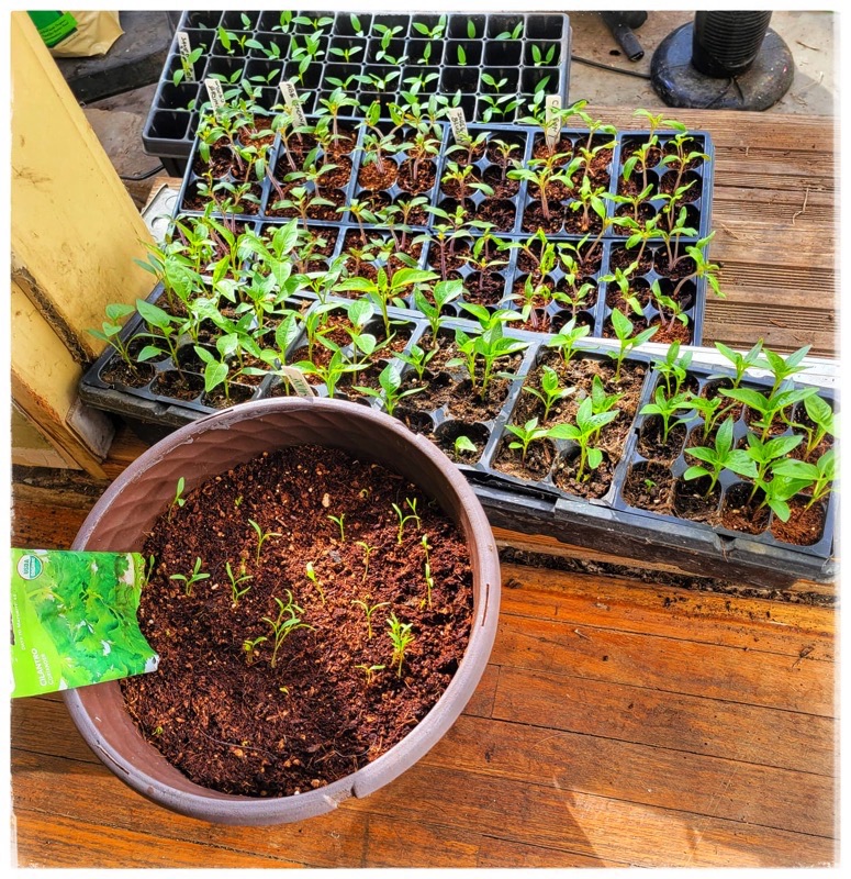 John’s seedlings, on the steps of the house glasshouse in the sun.