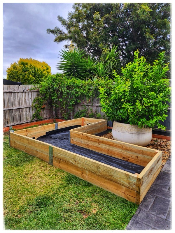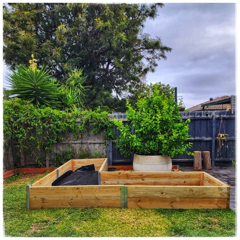 The first of our raised beds is finished and Sops (my daughter) says they are Huuge!